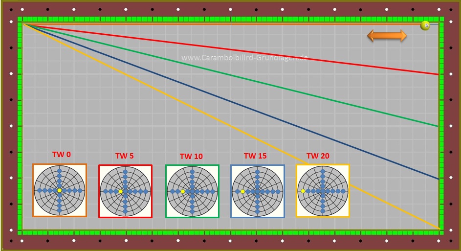 Da Ball 1 aber sehr viele unterschiedliche Stoßpunkte beinhaltet kommt es auch dazu das ein TW = 10 nicht immer den