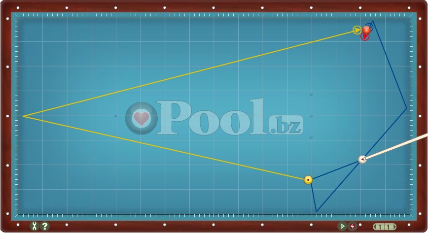 Wie muß ich Ball 2 anspielen damit er über mehrere Banden zu Ball 3 gelangt