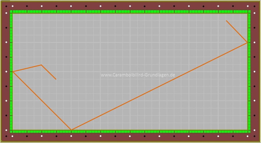 Ist der Abstand zur Ecke links 2 DIA und liegt Ball 3 auf dem Laufweg Bande 4 zu Bande 5 so ist